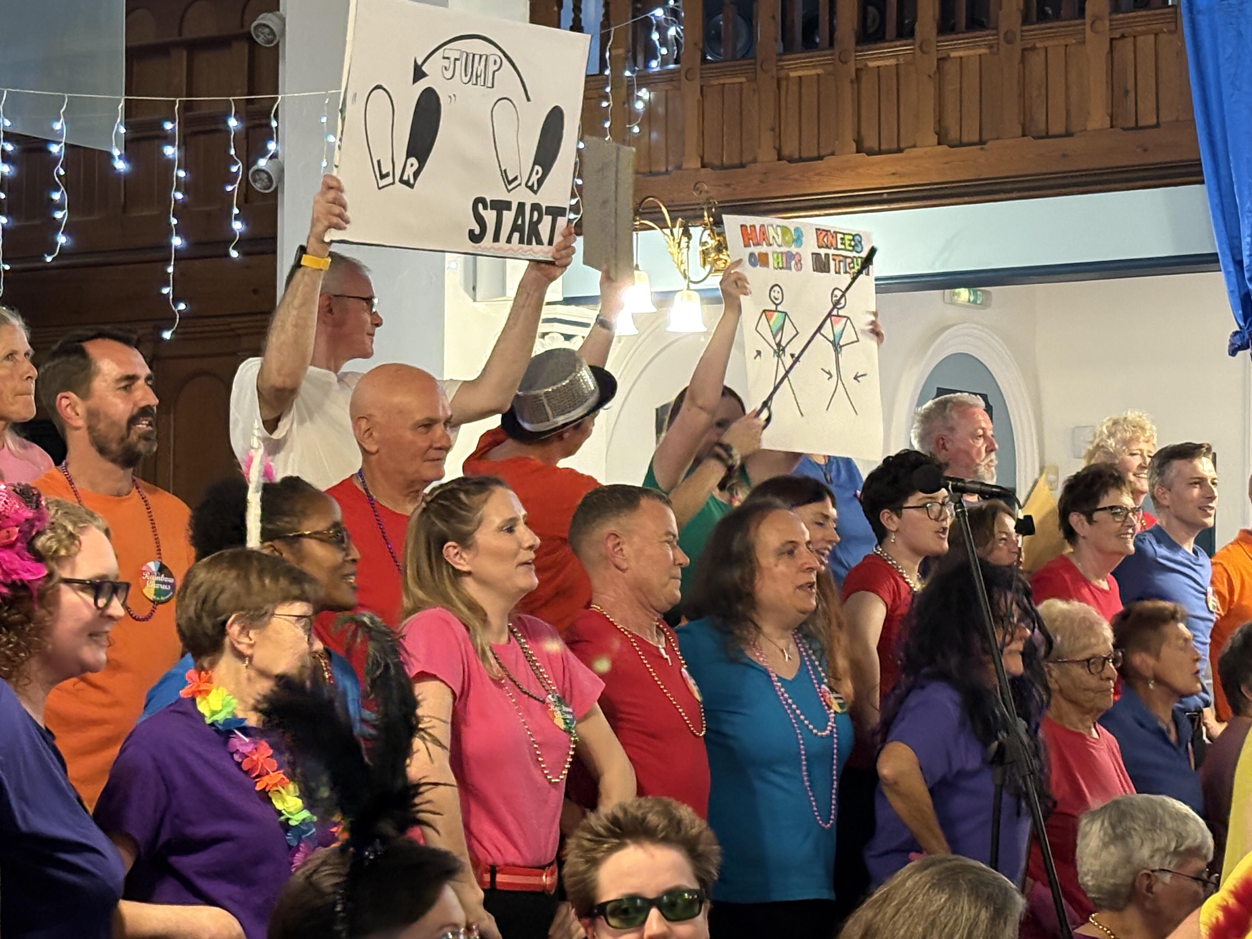 The Rainbow Chorus is a community choir with high standards that rehearses weekly on a Monday evening with additional rehearsals on some weekends. We have New Members Nights twice a year (January and September) with no obligation to join and no audition, although there is an expectation that you can sing in tune.