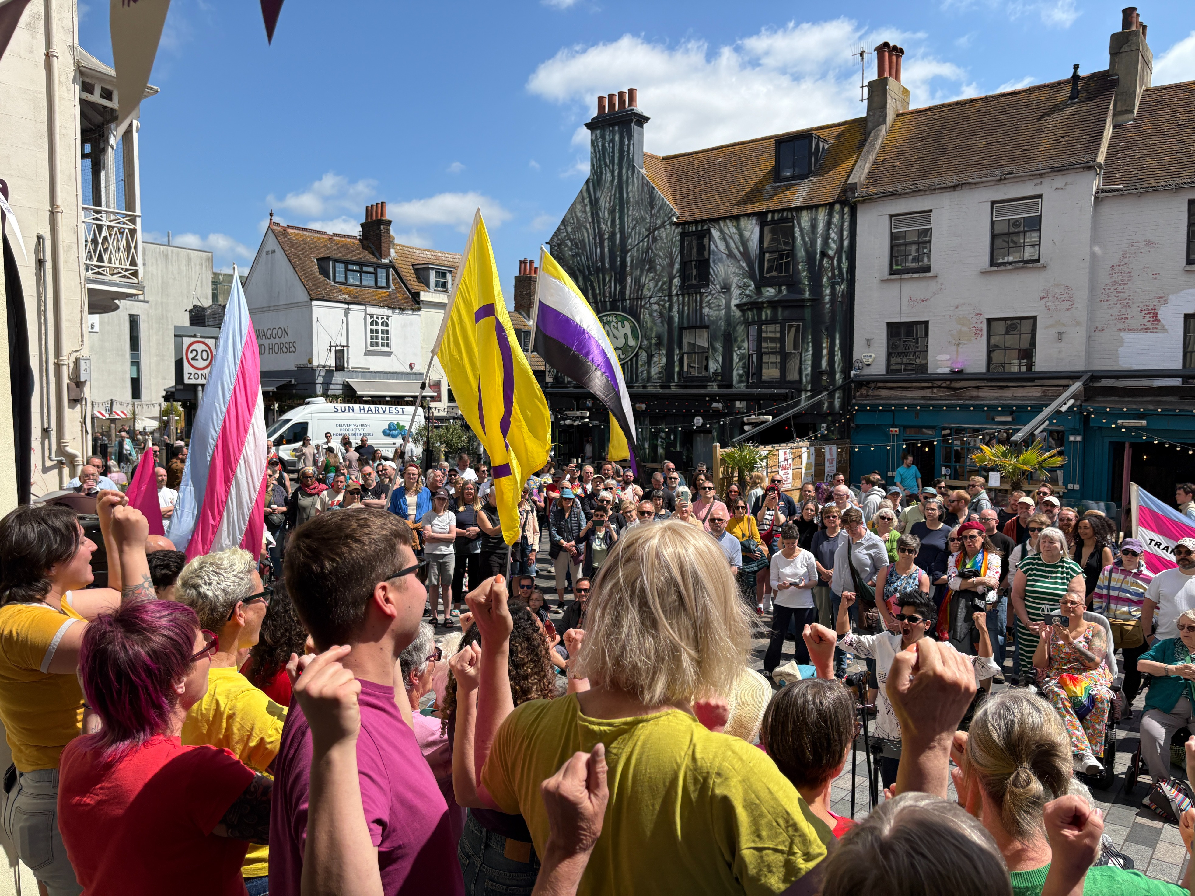 Thank you to the amazing crowd who came along to the Brighton and Hove IDAHOBIT community vigil! Bravo to the Brighton Gay Men's Chorus for their brilliant songs, the speakers for their powerful words, Drum & Blaze for the magnificent noise and Aneesa Chaudhry for leading the chorus through some bangers! The power of community!!!
