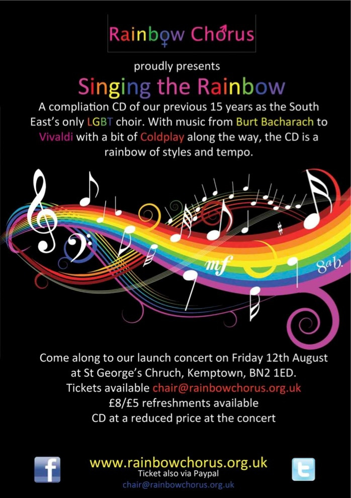 Welcome to the Rainbow Chorus! We are the largest community LGBTQ+ SATB choir in the south-east outside of London. Based in Brighton & Hove we have been celebrating diversity through music since 1997. We welcome people from all sections of our community.